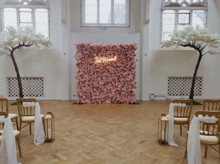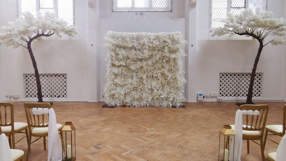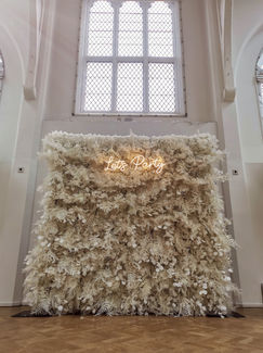 If foliage is your vibe then Harper is for you! She's full of lush greenery with pops of ivory and white florals. This design of wall also goes well with our broken arch, and our hanging wisteria blossom trees and arch. Harper is a truly versatile floral backdrop and can work with many colour schemes and not compete with any other colours you might be introducing into the room. Perfect with a neon sign, or just by herself!