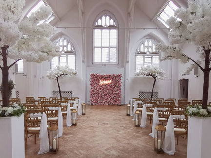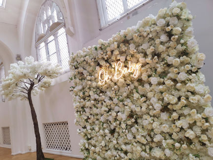The Grace is a classic and elegant look and has a mix of timeless ivory florals to compliment any event. Its full of roses, hydrangea, ranunculus, minimal foliage, and peony. Absolutely perfect for a wedding set up, whether that's behind your ceremony table, top table or both! An anniversary celebration, or a birthday celebration, or a modern shower event. Personalise with a neon signage, or we can also style up with our ivory blossom arch, and with tree centrepieces too!