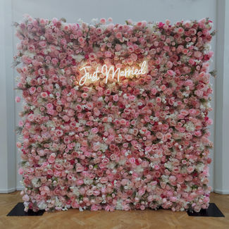 Oh mamma Mia!!! If the idea of a picture perfect pastel dream spring wedding is what you're looking for, then this flower wall is certainly the one for you. With a mix of pastel colours is lots of different blooms, the Mia wall is a real English Country Garden gem. Just imagine her behind your ceremony table as you say your "I Do's!" or to make a photo opportunity in your wedding breakfast space...just perfect! She looks just as good with or without neon signage too.
